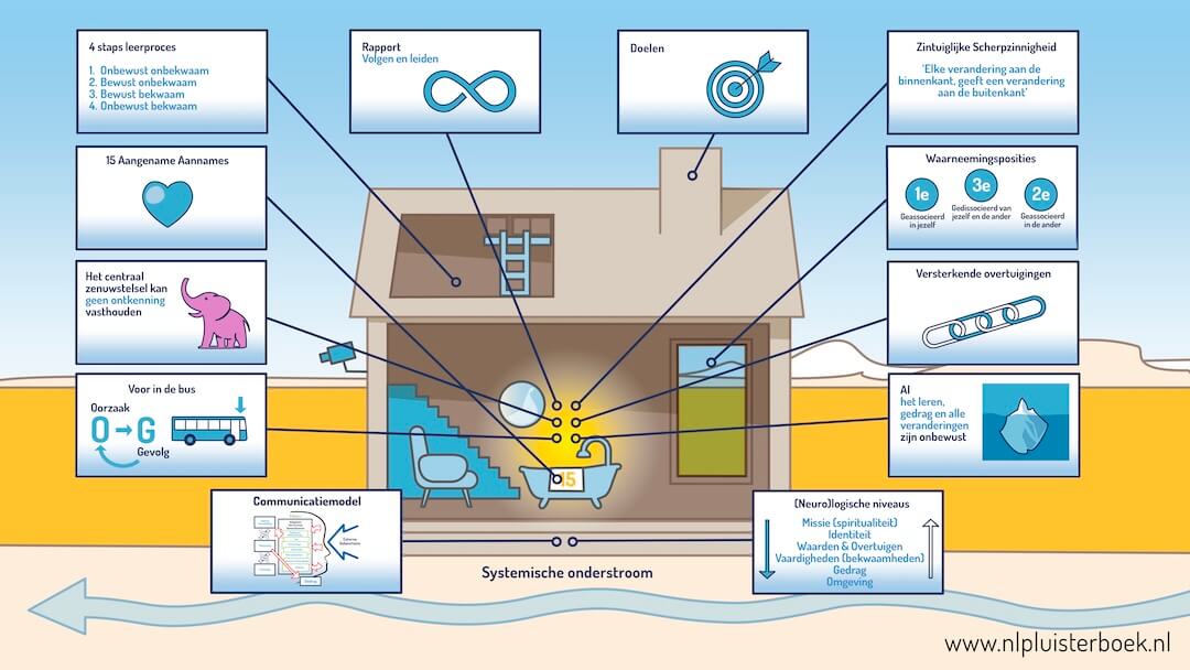 Het NLP Communicatiehuis is een metafoor voor hoe wij communiceren, leren, relaties onderhouden én onze doelen bereiken.